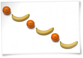The first pattern that is introduced in the preschool classroom is called an AB pattern. This means that two different objects line up in an alternating pattern, such as: orange (A), banana (B), orange (A), banana (B), and so on.